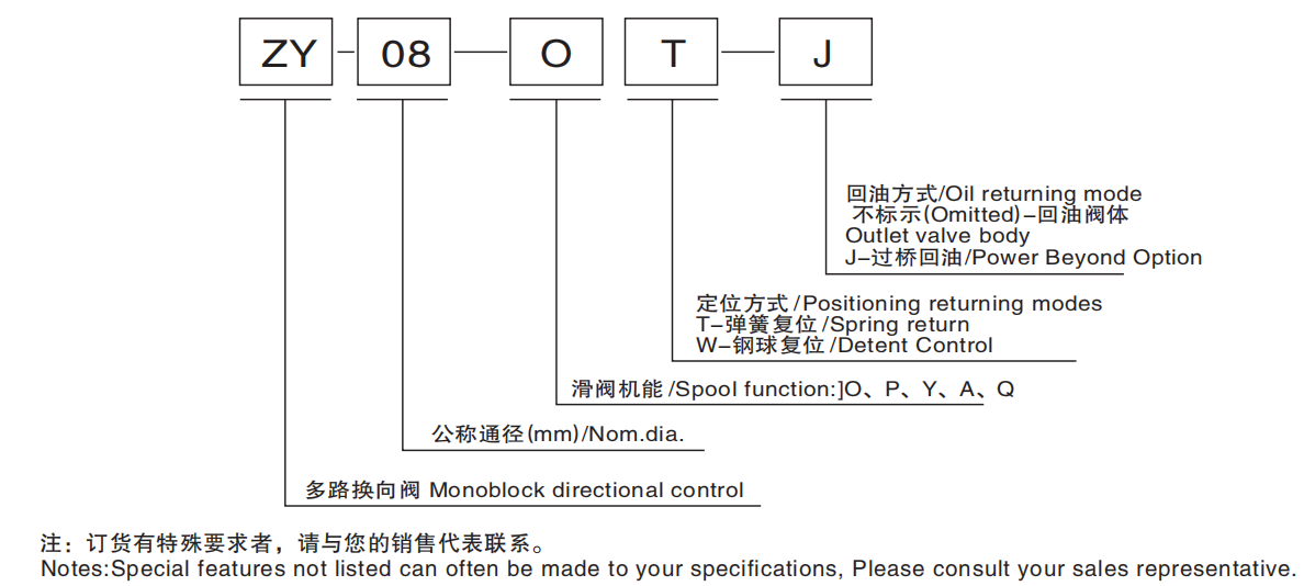 ZY08 多路換向閥是我單位自主設(shè)計開發(fā)的一種中高壓整體式七路換向閥??砂纯蛻粢笤陂y上設(shè)溢流伐。溢流閥可調(diào)節(jié)系統(tǒng)壓力,單向閥防止油液倒流,換向閥滑閥機能有A、O、Y、P等,可任意組合。輸出口與其它液壓元件相接提供動力源。經(jīng)過特殊設(shè)計的該代廣泛用于叉車、環(huán)衛(wèi)車輛、小型裝載機等工程機械的液壓系統(tǒng)。